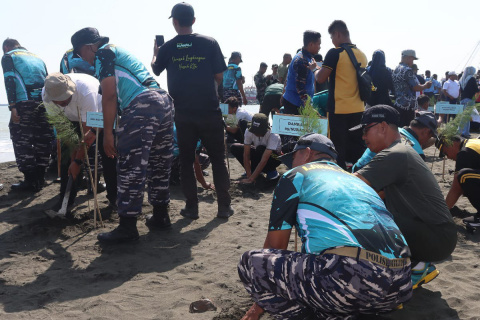 Memperingati HUT TNI Ke -80, LANAL Tegal Gelar Penanaman Cemara Laut dan Bhakti Sosial